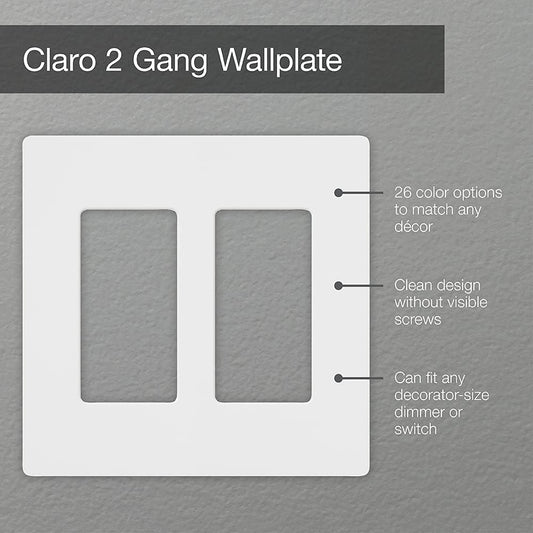 Lutron CW-2-WH Claro 2 Gang Wallplate, Gloss White