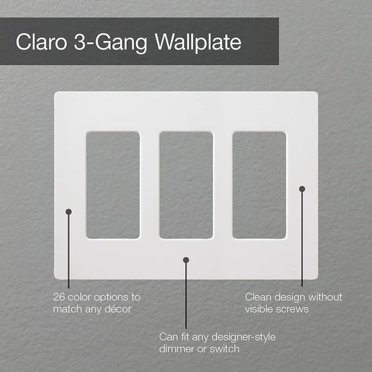 Lutron CW-3-WH Claro 3 Gang Wallplate, Gloss White