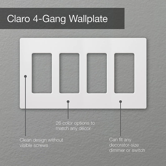 Lutron CW-4-WH Claro 4 Gang Wallplate, Gloss White