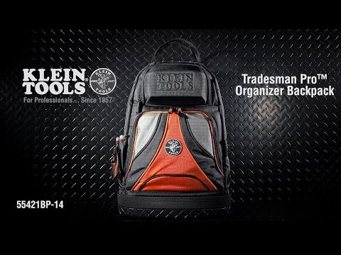 La mochila organizadora Tradesman Pro de Klein Tools cuenta con 39 bolsillos para guardar muchas herramientas, incluido un bolsillo frontal rígido y moldeado para anteojos de seguridad y un bolsillo frontal con cierre para guardar piezas sueltas. El interior de color naranja brillante lo ayudará a encontrar sus herramientas más rápido. La base moldeada duradera protege contra los elementos y es resistente al agua.