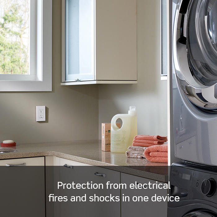 Designed to meet NEC® requirements, this solution is perfect for residential kitchens, laundry areas, or any upgrade requiring both AFCI and GFCI protection. Whether it's for new construction or replacing ungrounded outlets, this device ensures code compliance and peace of mind. The unit features a clean white monochromatic finish, is back and side wired for easy installation, and includes a nylon wallplate, mounting screws, and self-grounding clip.