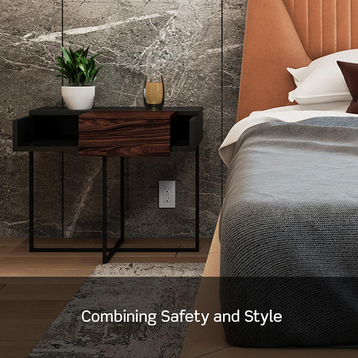 This monochromatic AFCI outlet is NEC® code compliant and ideal for bedrooms, living rooms, and other residential spaces. It’s tamper-resistant, supports back and side wiring, and includes a nylon wallplate, mounting screws, and a self-grounding clip for quick installation.