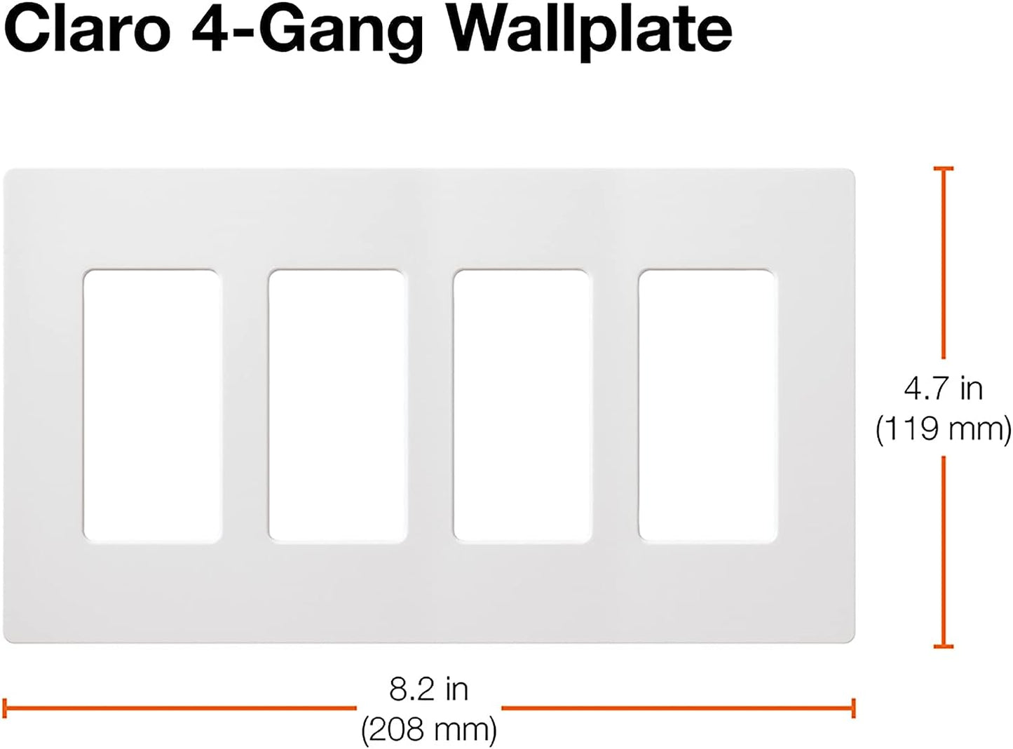 Lutron CW-4-WH Claro 4 Gang Wallplate, Gloss White