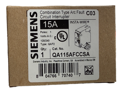 QA115AFCCSA - Siemens 15 Amp Single Pole Arc Fault (AFCI) Breaker