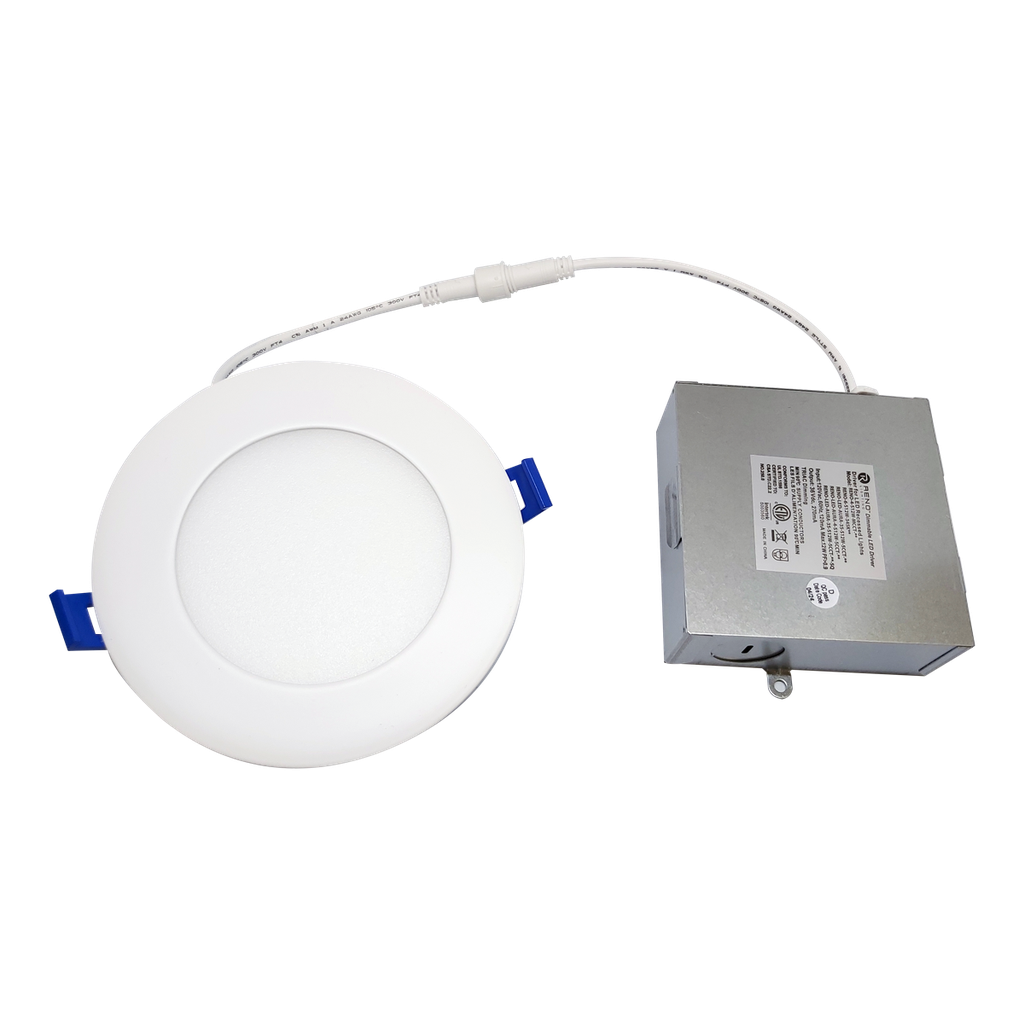 The Reno Collection PRIME 4" Slim Round LED Downlight is a high-performance, energy-efficient lighting solution designed for modern residential and commercial applications. Featuring a sleek, ultra-thin profile, this downlight is ideal for spaces with limited ceiling clearance. With its selectable 5CCT (2700K-5000K) technology, users can customize the lighting color temperature to match their preference. Engineered with a high CRI of >80, it delivers vibrant and accurate color rendering for enhanced visibility.