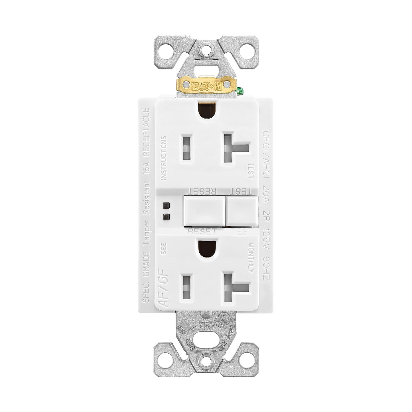 Eaton TRAFGF20W AFCI/GFCI Combination Duplex Receptacle, 20A, White